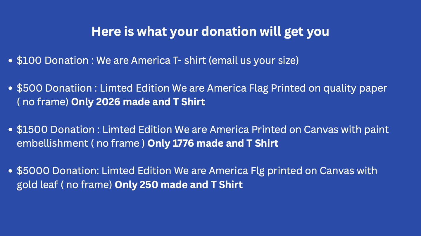When you donate to the We Are America community project and documentary, you're not just giving funds — you're becoming part of something meaningful, lasting, and profoundly intentional.